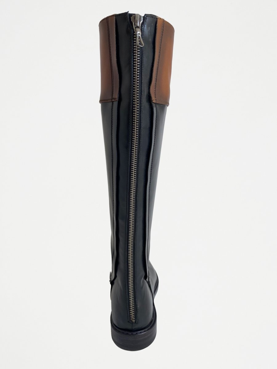 Suola in cuoio con antiscivolo per maggiore stabilità. Altezza sotto il ginocchio, perfetto per un look sofisticato.