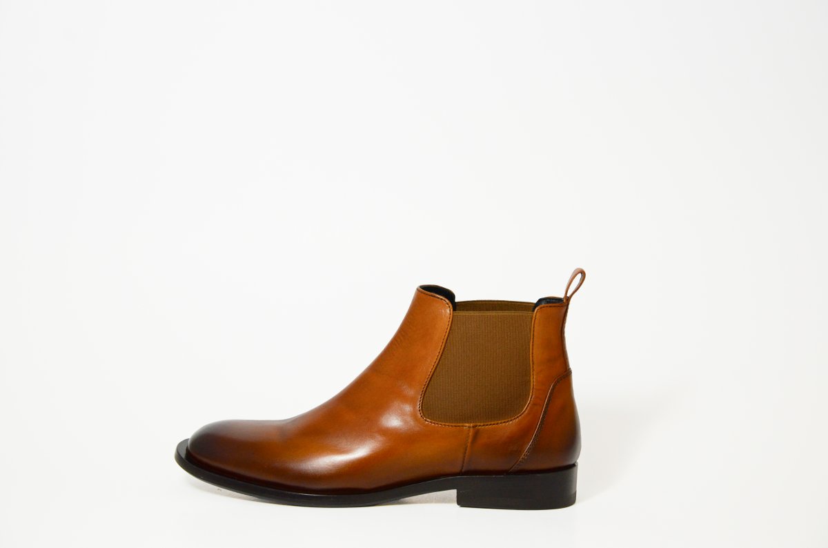 Handcrafted calf leather ankle boot with a vintage-effect finish, featuring side elastics for a practical and comfortable fit.