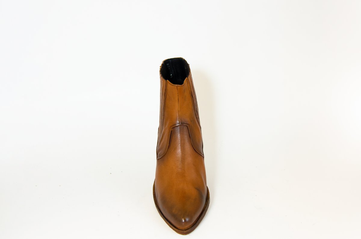 Texan ankle boot with side elastic, crafted from soft vintage-effect leather.