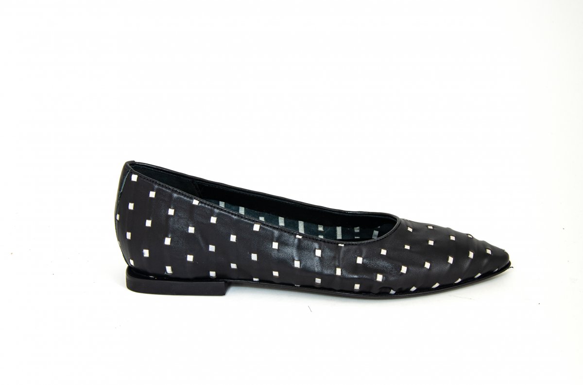 Elegant woven nappa ballet flat with a geometric pattern.