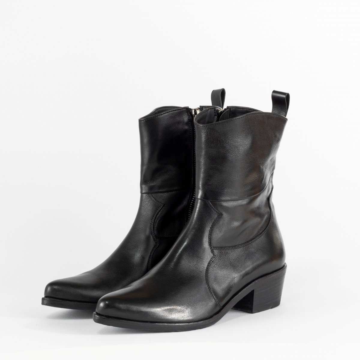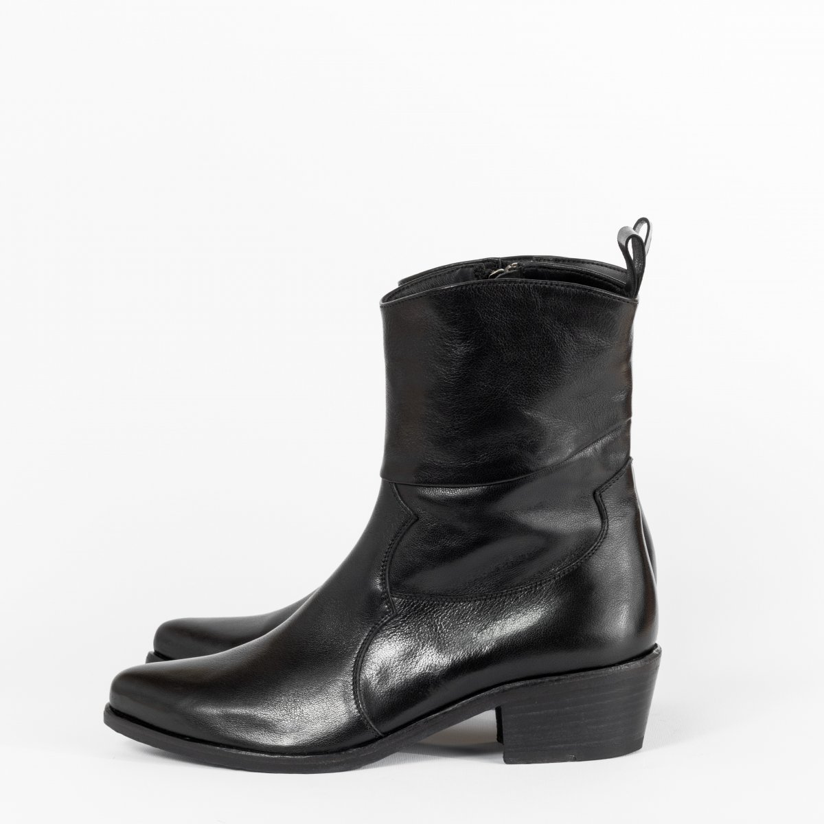 Texan ankle boots made of soft leather and with slip lasting method.