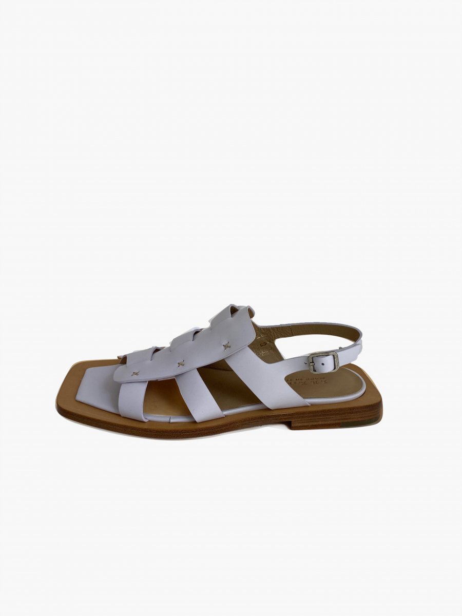 Flat sandal in soft nappa leather with artisanal details and hand-stitched accents.