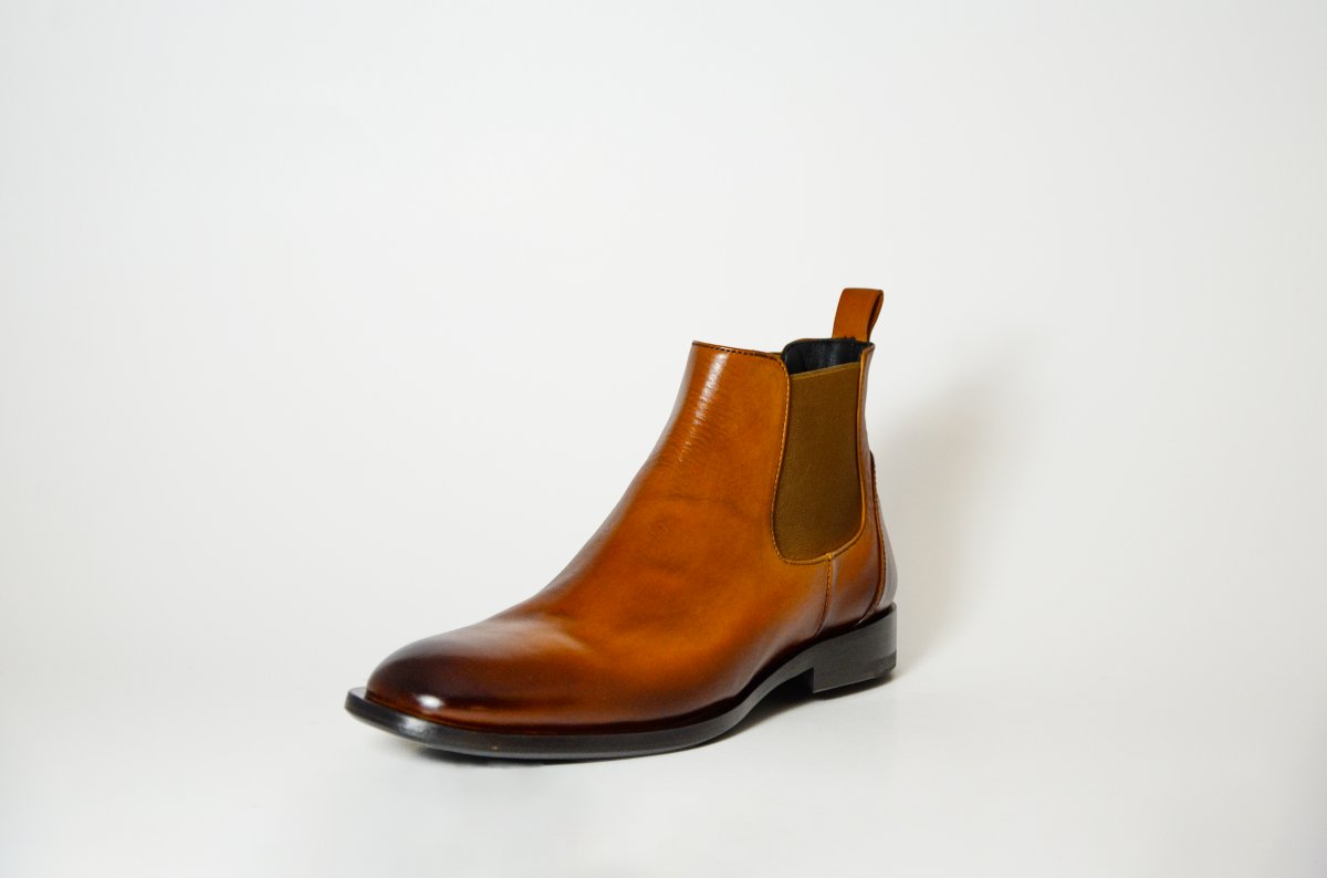 Handcrafted calf leather ankle boot with a vintage-effect finish, featuring side elastics for a practical and comfortable fit.