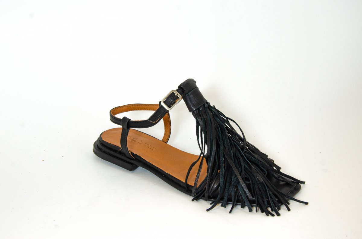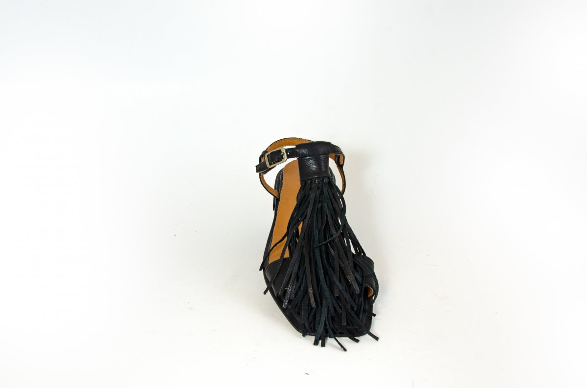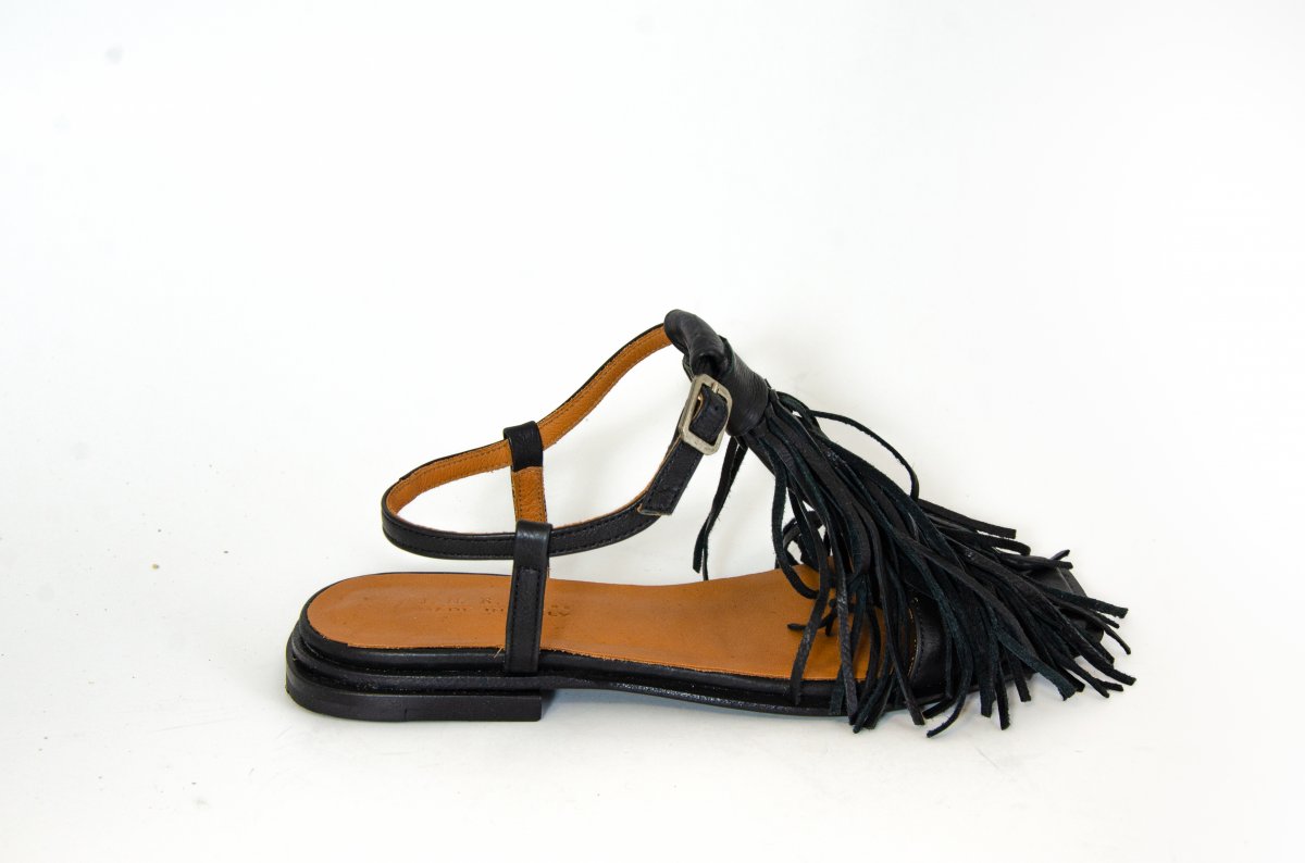 Flexible leather sandal with decorative fringes for a boho-chic look.