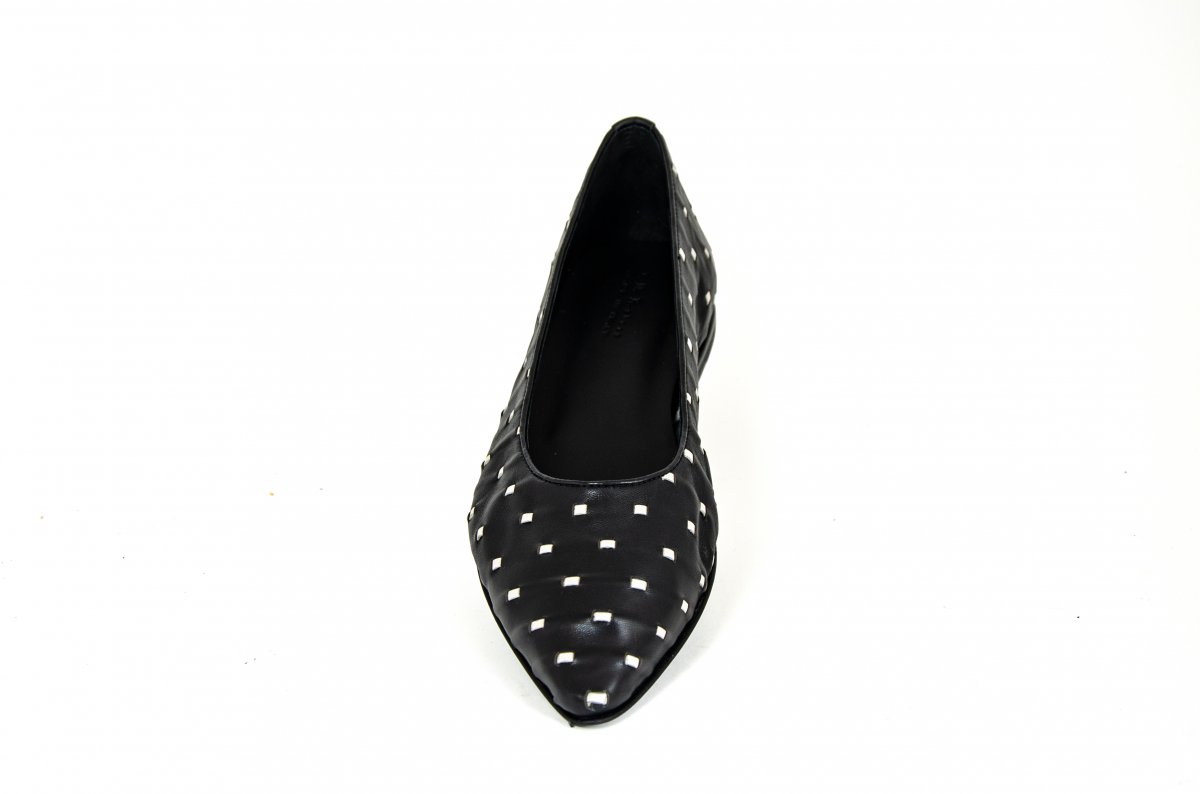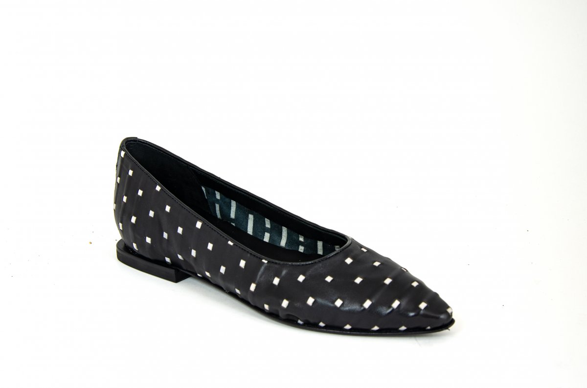 Elegant woven nappa ballet flat with a geometric pattern.