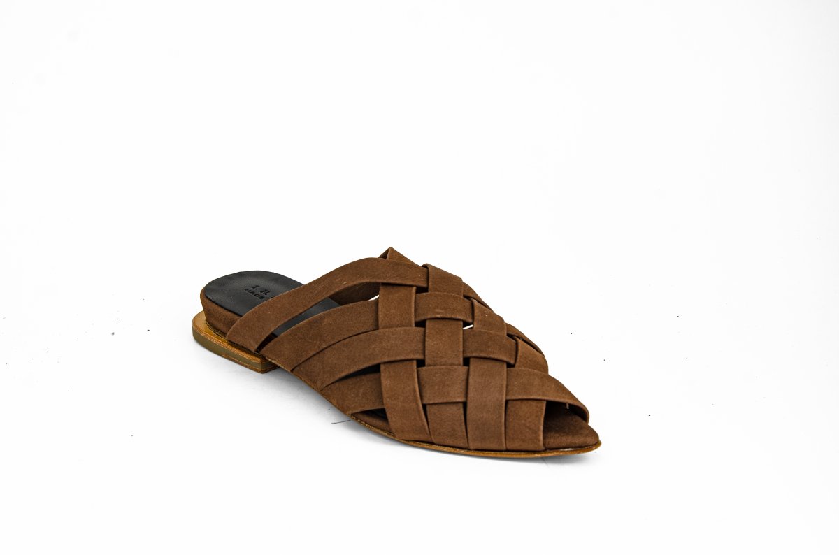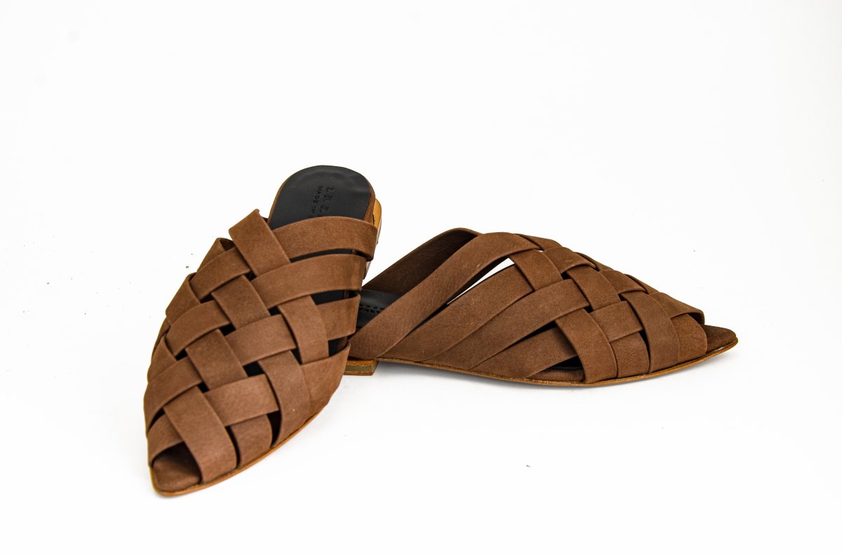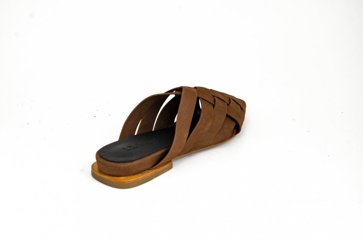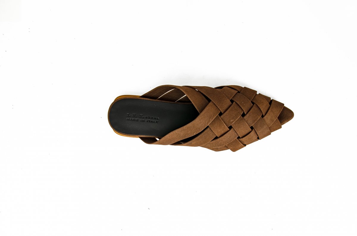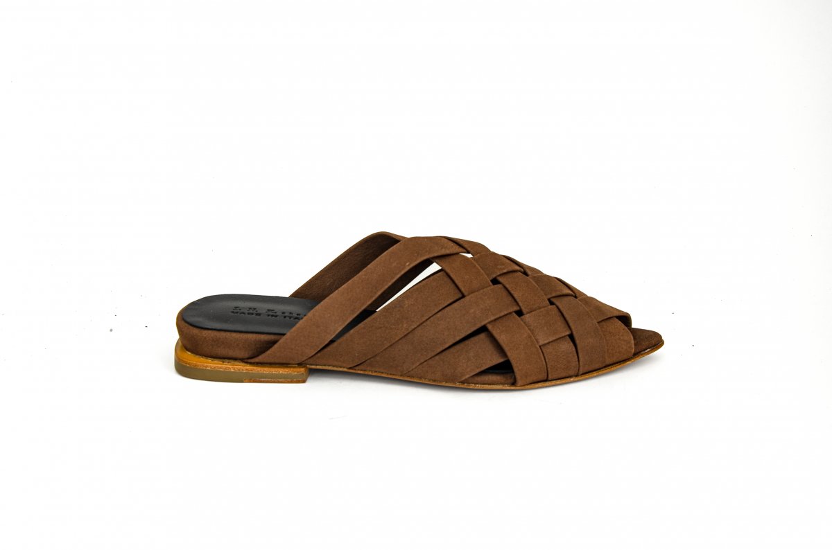 Flat mule in soft woven leather, perfect for a refined summer look.