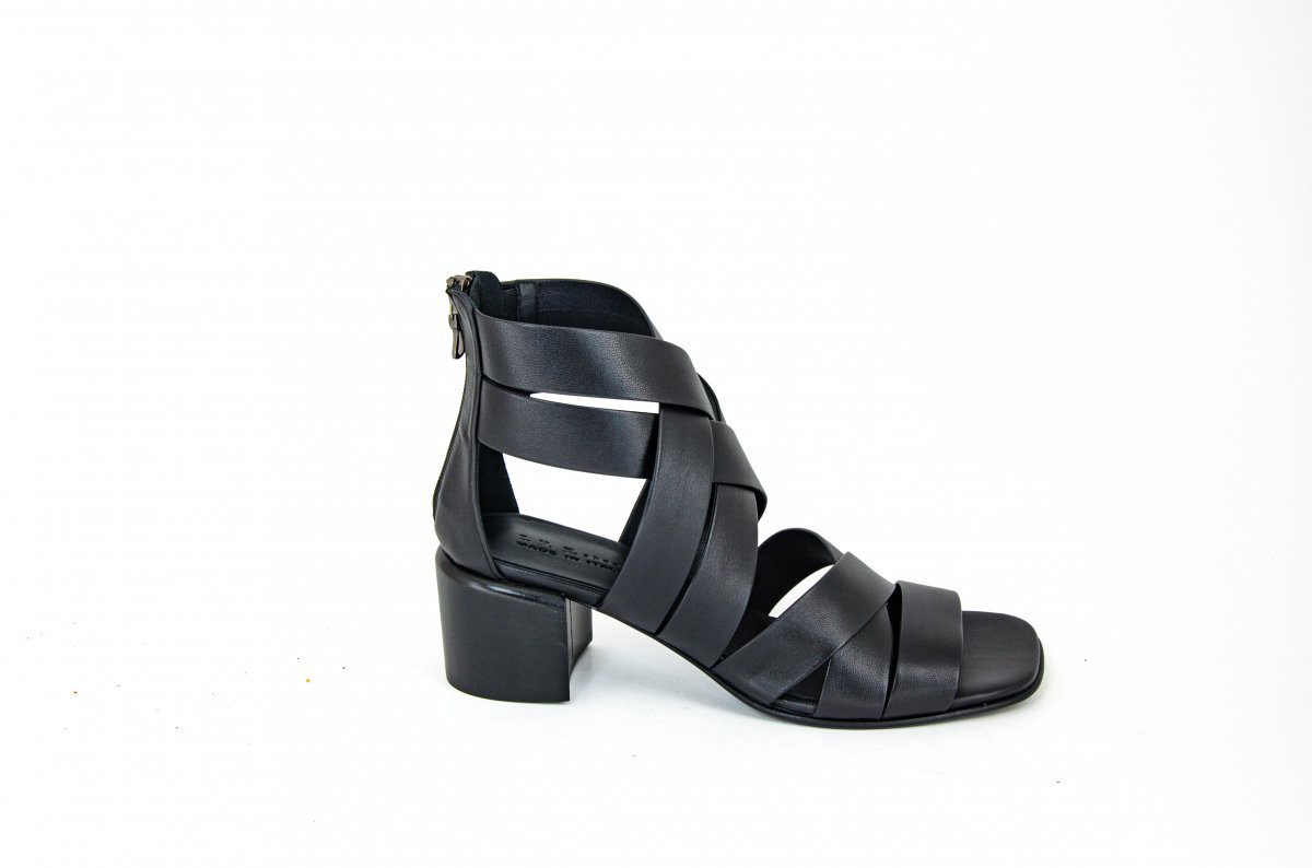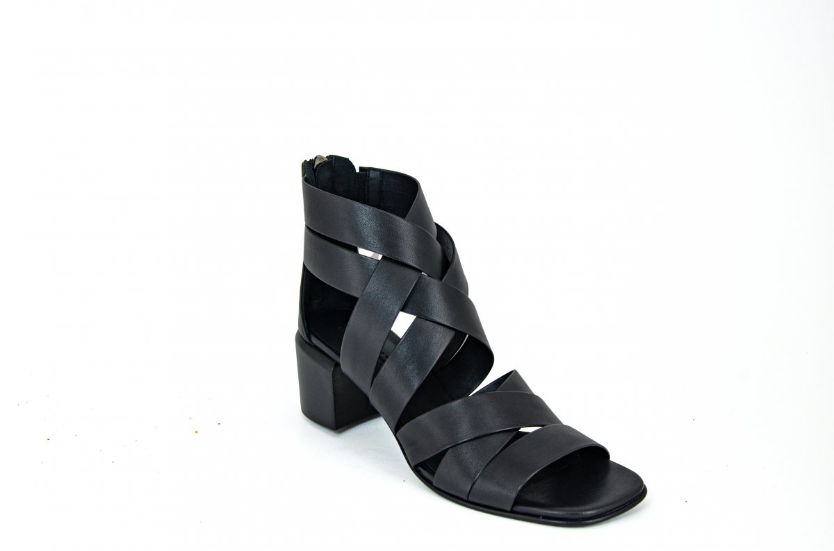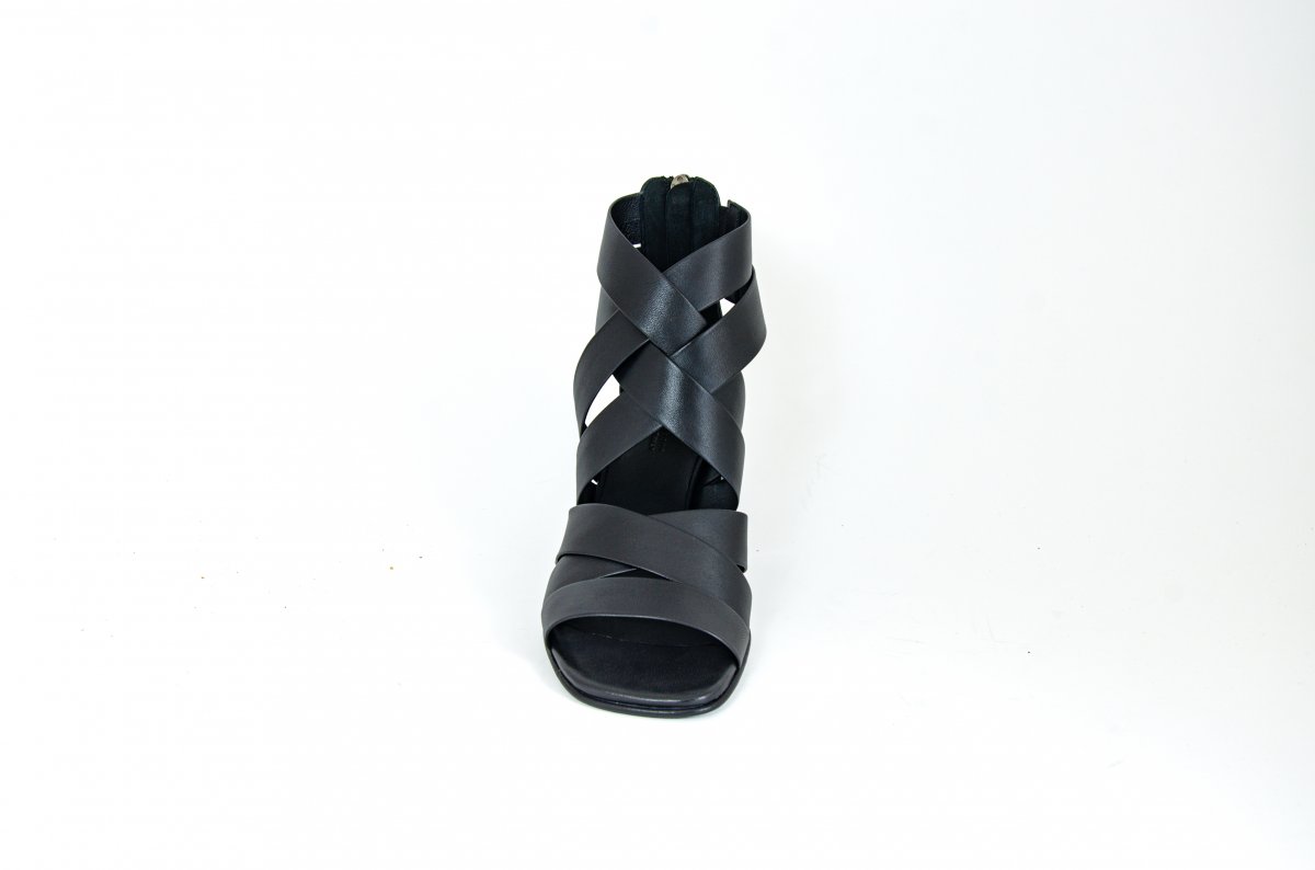 50 mm heel sandal in soft woven leather with an elegant and enveloping design.